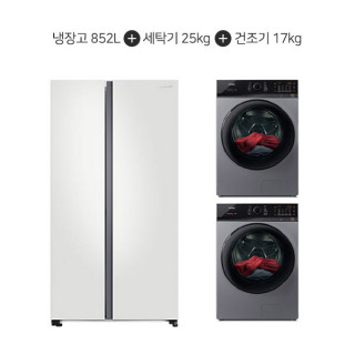[삼성+위닉스] 양문형 냉장고 852L 코타화이트+텀블 세탁기 25kg+건조기 17kg 메탈릭그레이 [RS84B5001CW+TMWM250-KSK+HGXH170-KSK]
